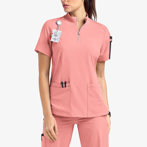Woman Premium Quality Medical Scrubs Uniform jersey Custom Made Medical Scrubs Tops Jersey Women Half Zipper Scrubs Tops